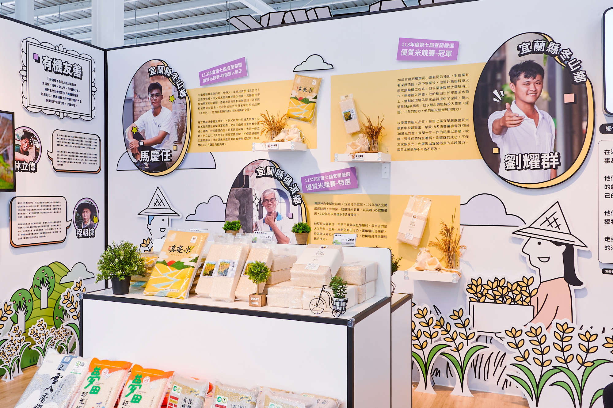 透過農夫、廚師與用餐者的互動場景,搭配鮮明主視覺牆,呈現從產地到餐桌的協作旅程,並以宜蘭稻米文化為核心,展現飲食背後的土地價值與永續理念。